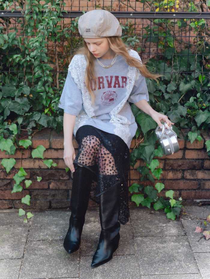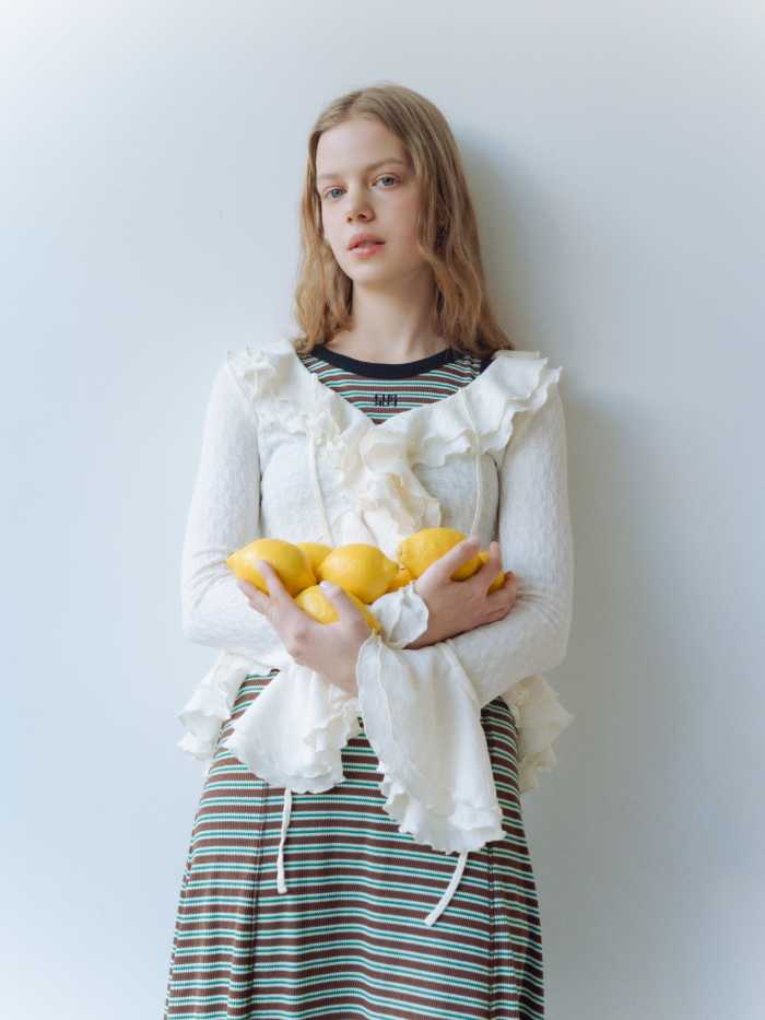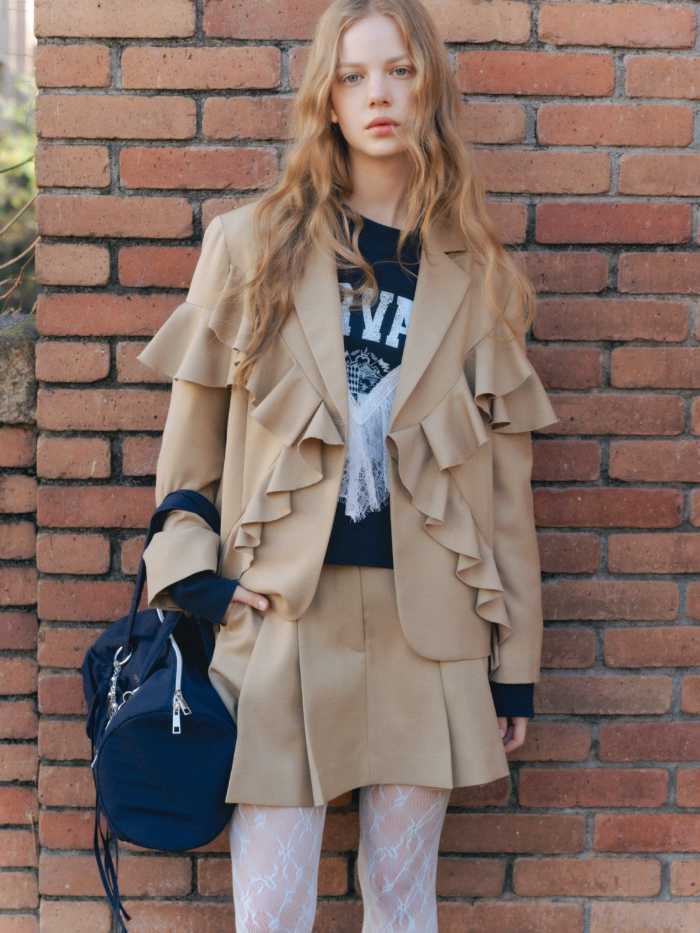 フリルディテールやリボン、ハートモチーフがフェミニンさを引き立てつつ、軽やかなジャケットやブルゾンが程よいモード感を添えます。