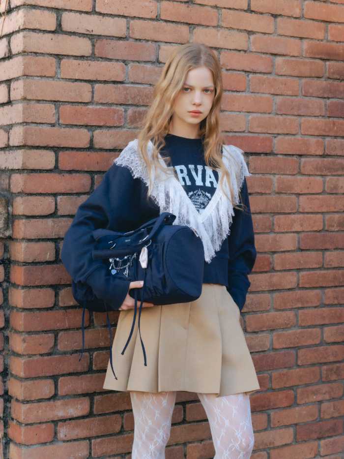 Jacket29,700円、Skirt19,800円、Sweatshirt14,960円、Bag11,880円、Charm4,950円。