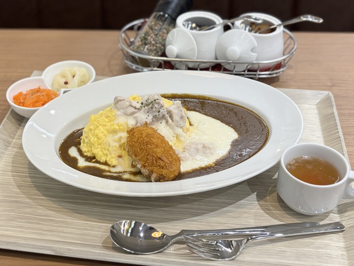 「チキンクリームオムカレー」ふわとろのたまごでスパイスライスを包みこみ、カレーソースとチキンのうまみが溶け込んだ特製のクリームソース。