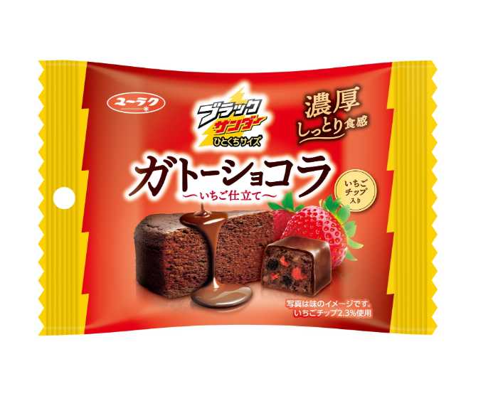 「ブラックサンダーひとくちサイズガトーショコラ~いちご仕立て~」は、冬に人気のガトーショコラフレーバーをひとくちサイズに凝縮。