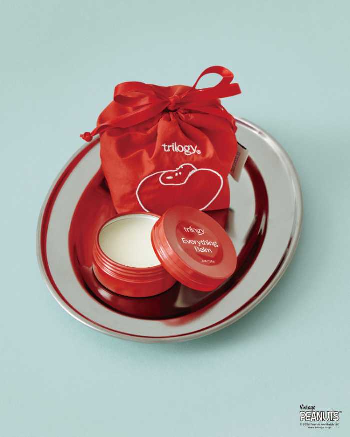 trilogy<PEANUTS>エブリシングバーム(巾着入り)は45ml、3,300円(税込)。