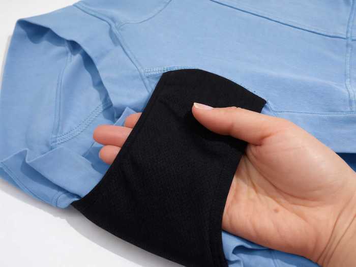 内側の“思いやりポケット”には、カイロを入れて温活したり、替えナプキンを収納できます。