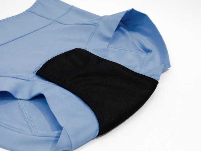 クロッチ部分には速乾性の高いメッシュ素材を使用し、蒸れにくくサラサラの着用感が続きます。