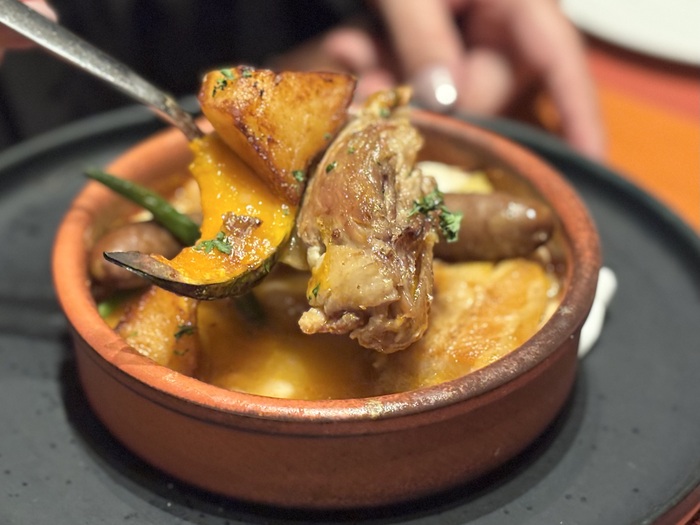 温かい器で提供される、南フランスの郷土料理「カスレ」。柔らかく煮込まれた鴨モモのコンフィや塩漬け豚バラ肉、白インゲン豆は、寒い冬の心温まる一品です。