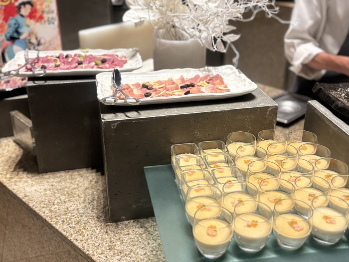 前菜ビュッフェも付いているので、自分好みの盛り付けで、好きなものを好きなだけいただけます。