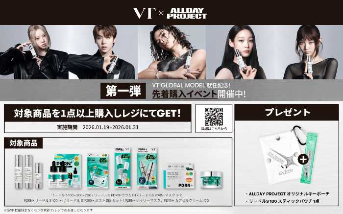 期間限定のキャンペーンやイベントを通して、毎日のケアが少し特別な時間に変わるはず♪この機会に、VTの世界観とALLDAY PROJECTの魅力をたっぷり味わってみてください。