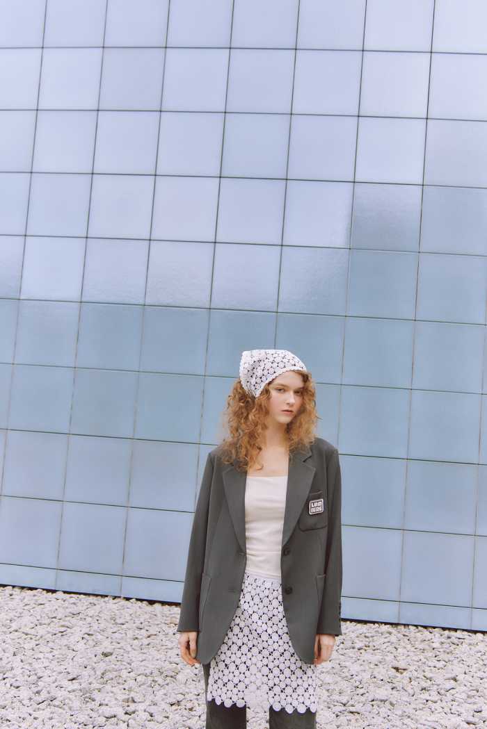 JACKET20,900円とSKIRT10,450円の組み合わせでは、端正さの中に女性らしい余韻をプラス。
