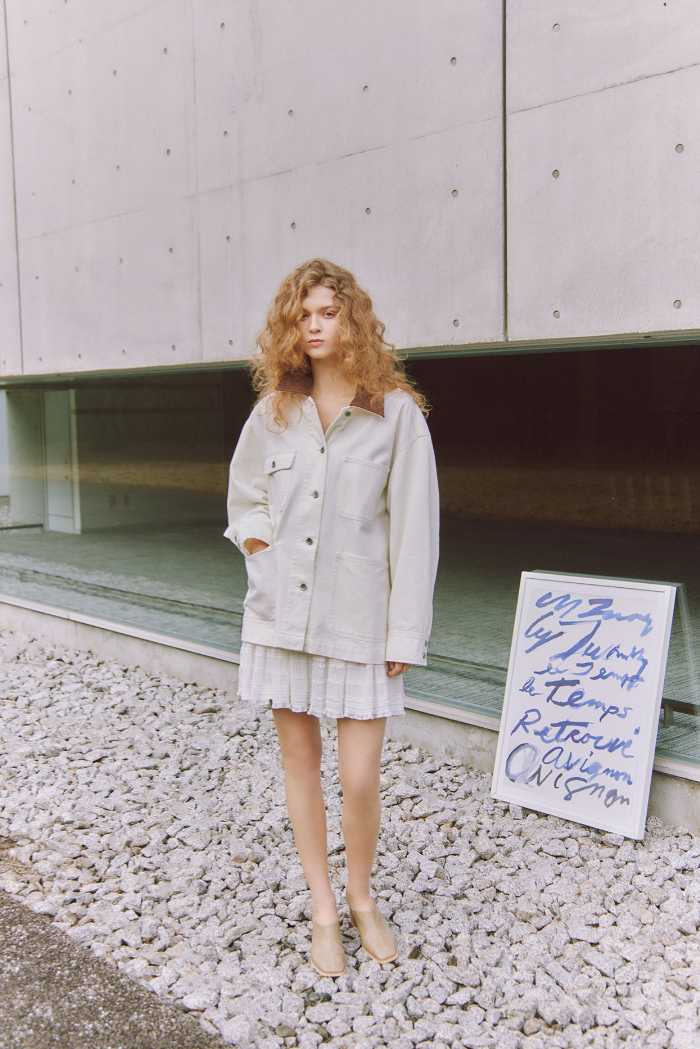 JACKET20,900円、CAMISOLE4,950円、PANTS12,100円のスタイリングは、柔らかな陰影が印象的です。