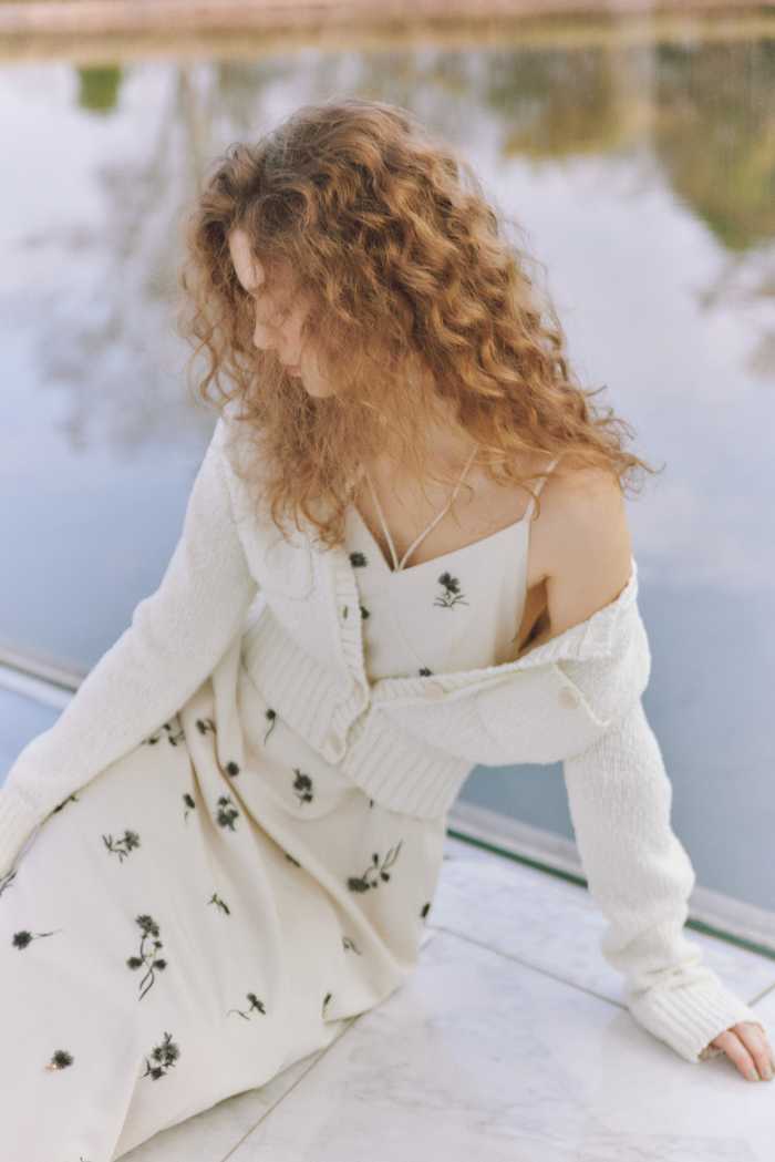 春らしいニュアンスカラーとミュートトーンが、コレクション全体をやさしく包み込みます。CARDIGAN11,000円とONE-PIECE19,800円のスタイルは、軽やかさと奥行きを両立。
