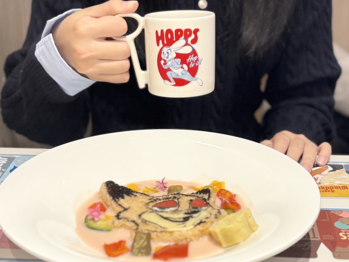 テーブルも、『ズートピア2』のキャラクターのデザインになっており、お料理やドリンクと一緒に、お写真映えもバッチリ!