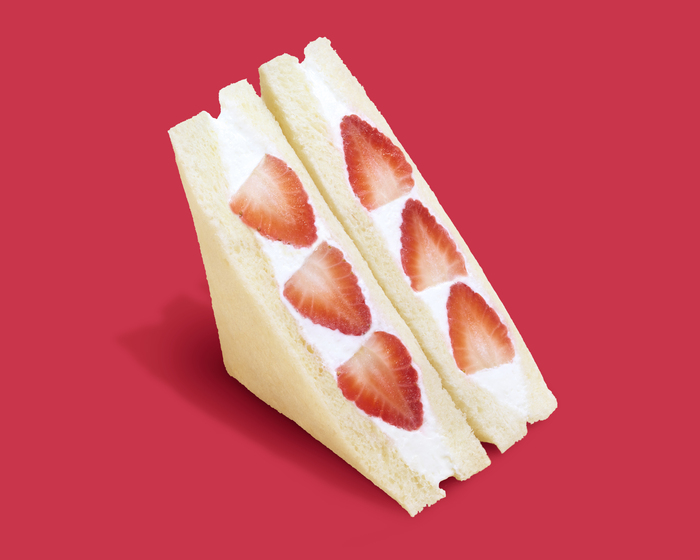 ふわふわのサンドの中には、たっぷりのクリームと、甘酸っぱいいちご、いちごを味わうシンプルな組み合わせのサンドイッチです。