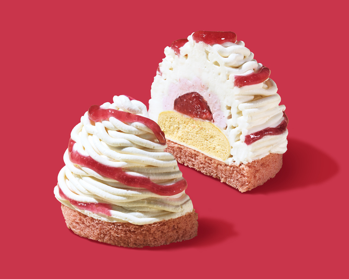白と赤のかわいらしいモンブラン。ホワイトチョコ入りのクリームに甘酸っぱいいちごのハーモニー、さっくりとした食感のメレンゲがアクセントになっており、リッチな味わい。