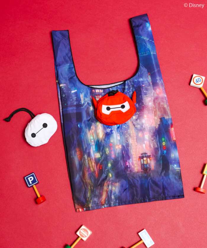 折りたたむと顔型になる【BAYMAX】ポケッタブルBAGは、WhiteとRedの2色展開。ホワイトはシルバー地に通常のベイマックス、レッドはサンフランソウキョウの夜景とパワードスーツ姿が描かれています。