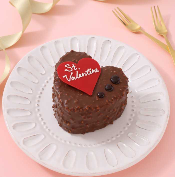 「ハートショコラ〜ナッツクランチ〜」は、ジャンドゥヤガナッシュクリームとチョコアーモンドスポンジを、キャラメリゼアーモンド入りチョコで包んだざくざく食感が魅力。
