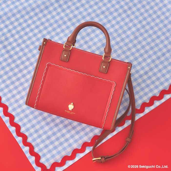 「ハンドバッグ」19,800円はレッドカラーを基調に、ショルダー付き2Way仕様で実用性も◎です。