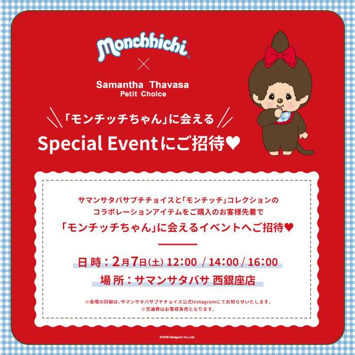 2月7日(土)には、サマンサタバサ西銀座店にて「モンチッチちゃん」来店イベントを開催。