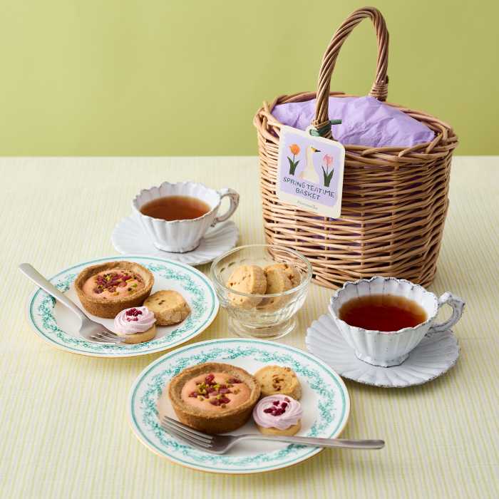 また、第2弾で登場する「スプリングティータイムバスケット」は2,800円(税込)。春限定のお茶とお菓子を手編みのバスケットに詰め合わせ、お花見やピクニックにもぴったり。