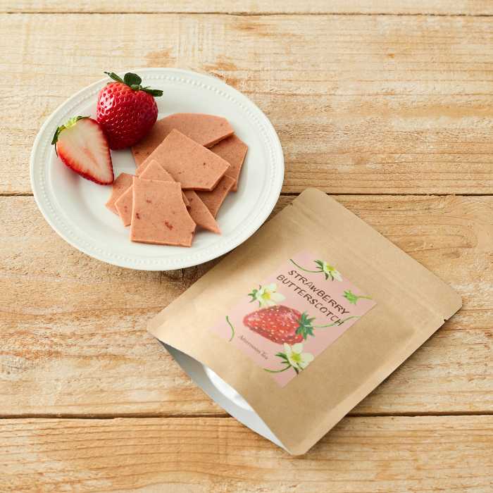 スイーツは、苺や紅茶の風味を楽しめる多彩なラインアップ。「ストロベリーバタースコッチ」900円(税込)は、発酵バターと生クリームに苺の甘酸っぱさをプラス。