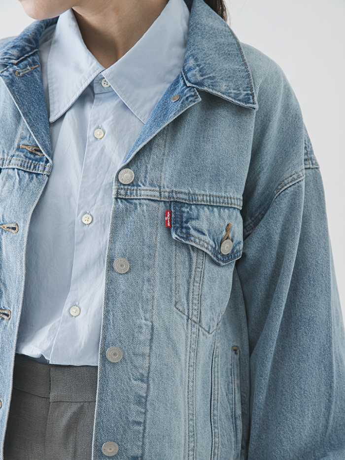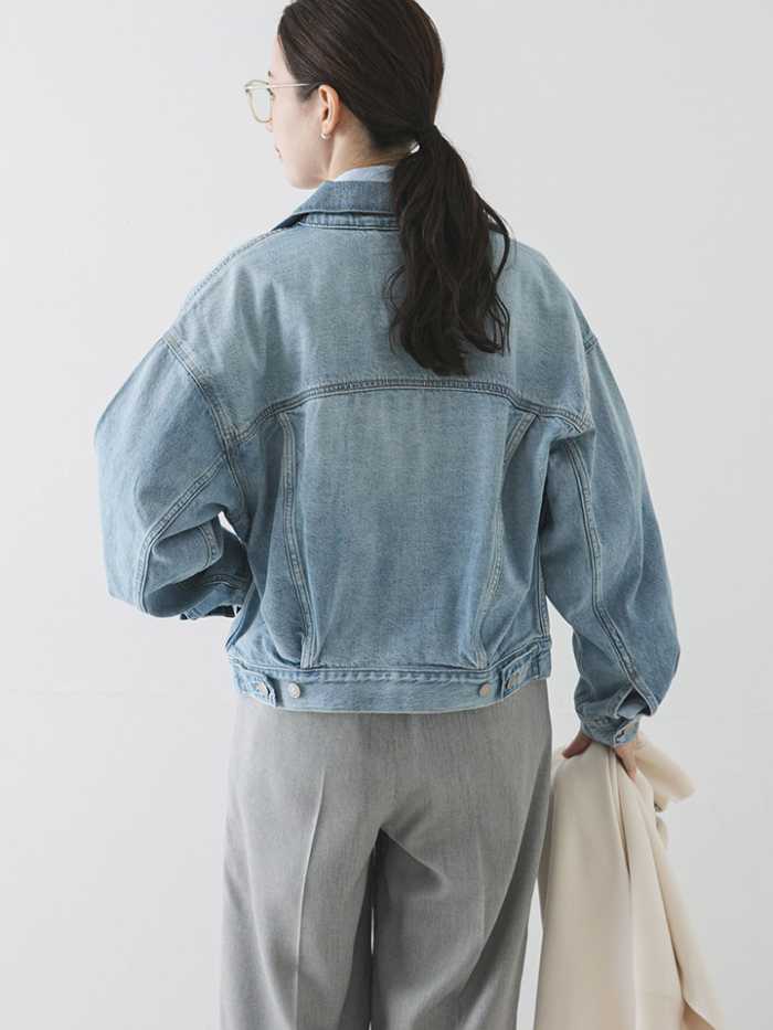 このトラッカージャケットは綿100%のミッドオンスデニムを使用し、通年使いやすい素材感に。