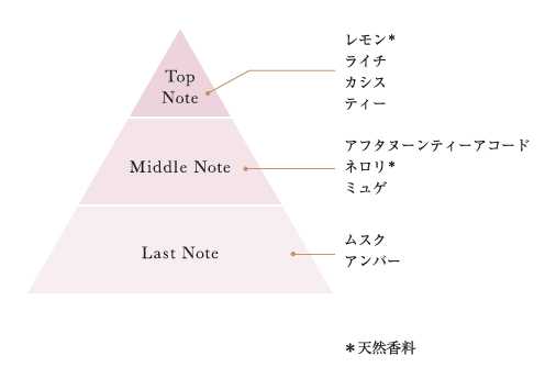 フレッシュで甘いレモンなどの柑橘に、紅茶を思わせるやわらかな余韻が重なり、軽やかで甘やかなアフタヌーンティーアコードへと広がります。