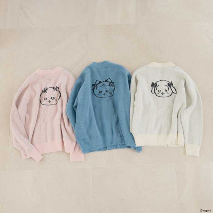 ニットカーディガンは8,800円(税込)、ちいかわ、ハチワレ、うさぎの3色、FREEサイズで、日常に優しい癒しを添えてくれます。