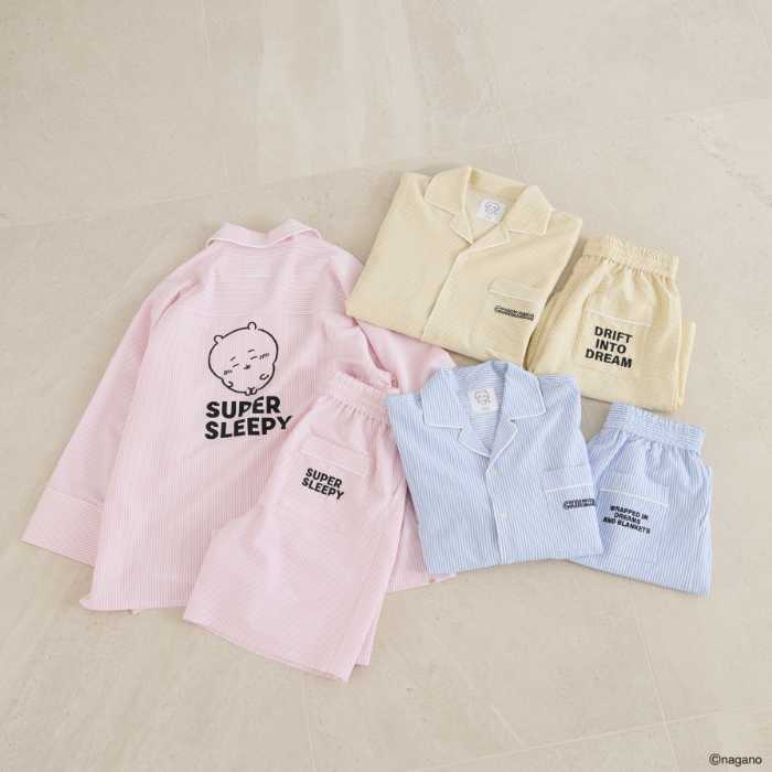 オーバーシルエットのシャツとハーフパンツで、リラックス感たっぷりの着心地です。価格は8,800円(税込)、カラーはちいかわ、ハチワレ、うさぎ、サイズはFREE。