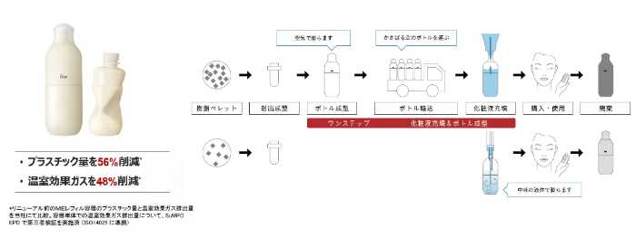 *リニューアル前のMEレフィル容器のプラスチック量と温室効果ガス排出量を当社にて比較。容器単体での温室効果ガス排出量について、SuMPOEPDで第三者検証を実施済(ISO14025に準拠)