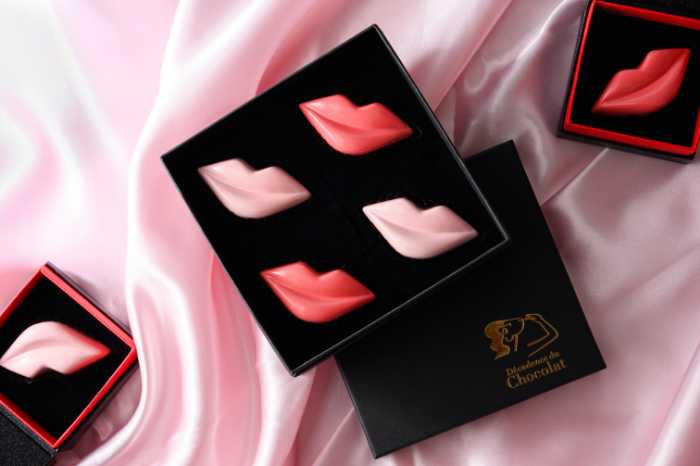 <DECADENCEDUCHOCOLAT>では、リップ型チョコレート「ラブキス」をバーニーズ限定カラーで展開。パステルピンクのキャラメルショコラと、コーラルピンクのプラリネショコラを詰め合わせました。