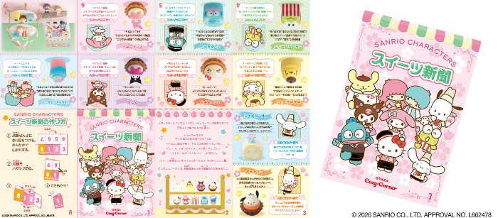 購入特典として、キャラクター紹介やケーキのポイントをまとめた「サンリオキャラクターズスイーツ新聞」リーフレット付きです。