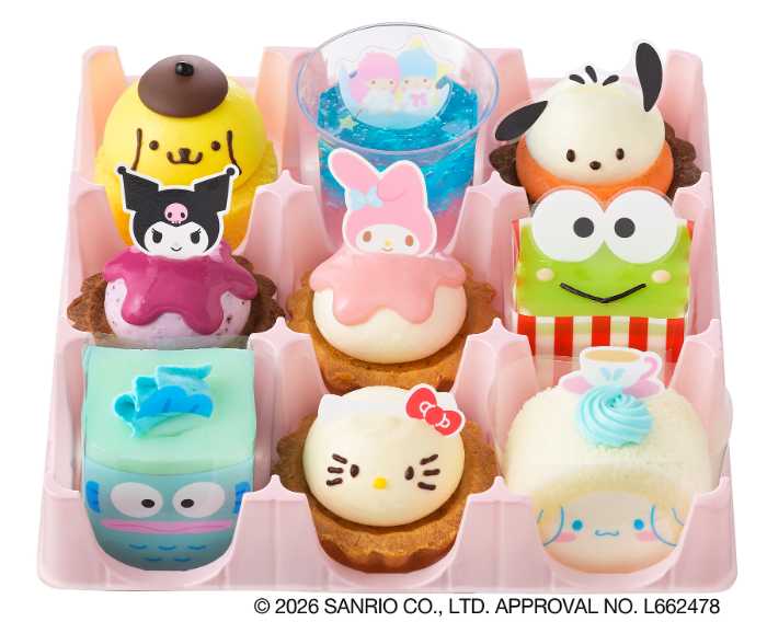 <サンリオキャラクターズ>スイーツコレクション(9個入)は、価格3,300円(税込3,564円)。販売期間は2月16日(月)〜3月15日(日)頃です。