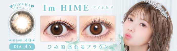 ImHIMEはDIA14.5mm、着色直径14.0mm。瞳をふんわり明るく魅せる王道ブラウンで、普段使いしやすいお姫様のような仕上がりに。