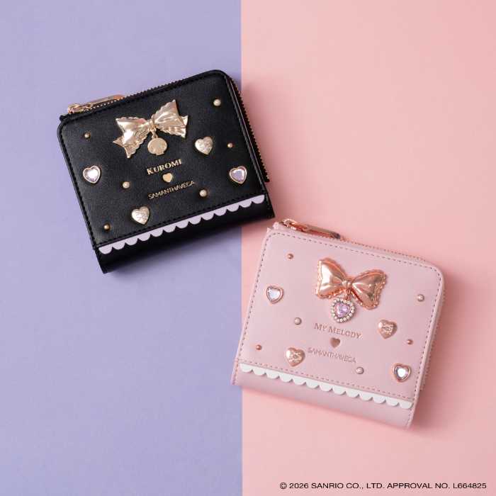 マイメロディの愛らしさと、クロミの小悪魔的な魅力をサマンサベガらしく落とし込んだ今回のコレクション。甘さだけで終わらないデザインは、大人可愛いスタイルにもぴったりです。