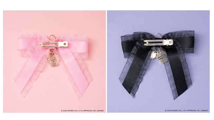 マイメロディはピンクゴールド金具を使用し、上品で甘い印象に。クロミはリボン下にドクロモチーフを取り入れ、少しスパイシーな可愛さを演出。