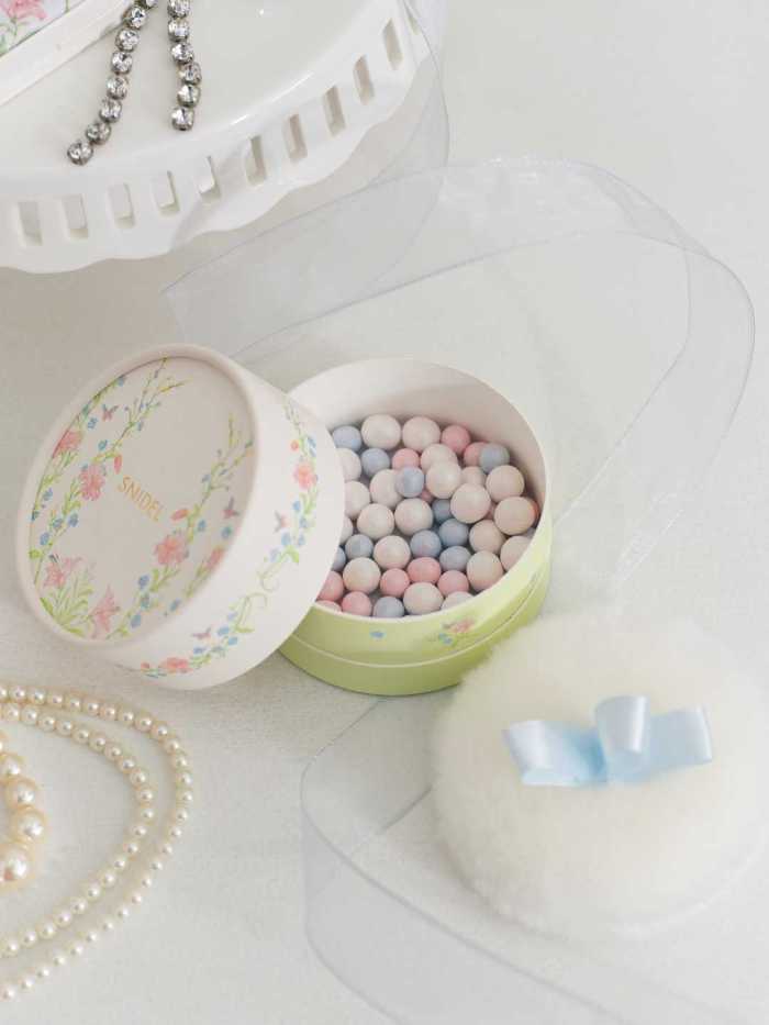 「SNIDELエターナルラディアンスパウダー」は限定1種、4,620円(税込)。ピュアホワイト、ラディアンスピンク、サムシングピュアブルーの3色が混ざり合い、肌に上品なツヤと透明感を演出します。