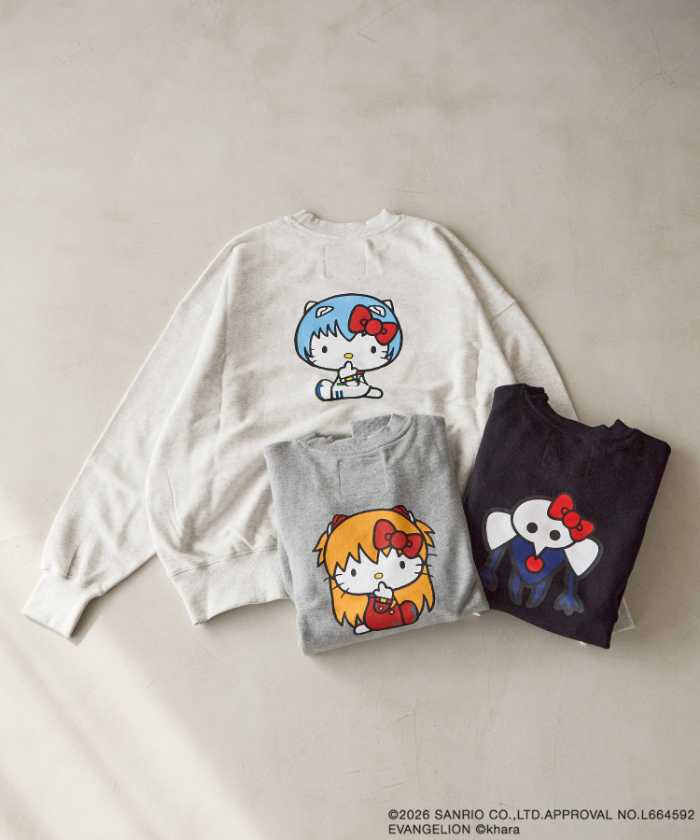 【EVA×KITTY】スウェットプルオーバーは、価格7,700円(税込)、カラー展開はレイ・第4使徒・アスカ、サイズはFREE。