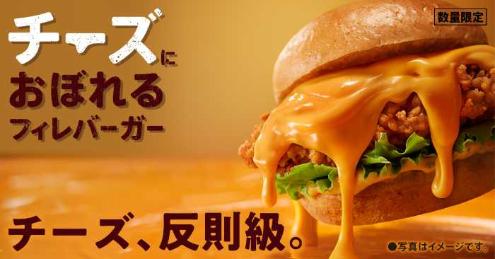 新登場の「チーズにおぼれるフィレバーガー(クリ〜ミ〜モッツァレラ)」は、フレッシュでミルキーなモッツァレラチーズが主役。
