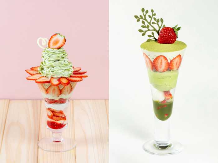 フルーツピークス季節限定♡抹茶×いちごの贅沢パフェ2種