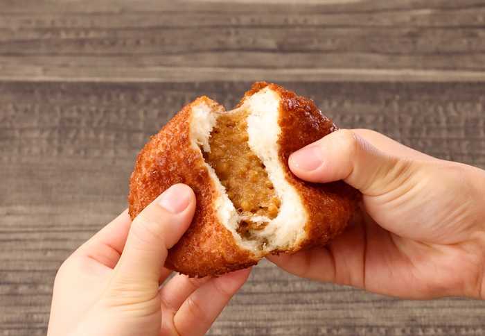 一口かじると、香ばしい衣とやわらかなパン生地が心地よく重なり、旨とろカレーをしっかりと引き立てます。食感のコントラストが、最後まで飽きさせません。