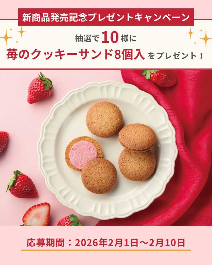 新発売を記念して、Instagramでは「苺のクッキーサンド」が当たるプレゼントキャンペーンを開催。