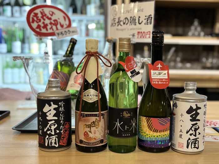 しぼりたて生酒の若々しさが特長の「鳴門鯛 吟醸しぼりたて生原酒」(生缶)、フルーティでスッキリした味わいが特徴の「ナルトタイ 純米原酒 水ト米」など、パッケージデザインもオシャレなものがたくさんあります。