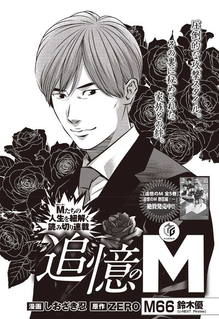 誌面では「老境博徒伝SOGA」「むこうぶち」「ピークアウト」などの大人気漫画が連載中。「追憶のM~鈴木優~」では、Mリーガー鈴木優の人生と家族秘話に迫ります。
