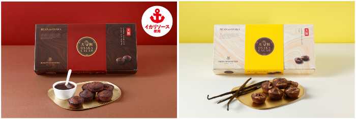 〈ソース・ドゥ・フリュイ〉は、ウガンダ産カカオの繊細な香りに、関西を代表するイカリソースをアクセントとしてプラス。
