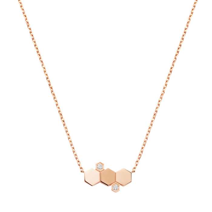 新作では、鏡面仕上げのハニカムモチーフが連なるリングや、耳元に洗練を添えるイヤーカフ、ミニマルで美しいペンダントなどが登場。