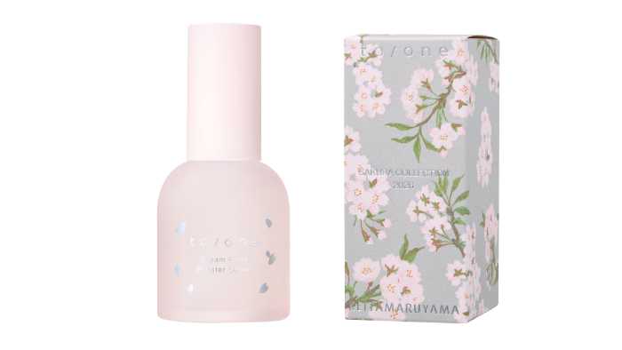 スキンケアとフレグランスも桜一色。トーンブライトニングデイエッセンスUVSAKURAinBloomは限定1色40g3,300円(taxin)でSPF50+/PA++++、UV耐水性☆☆を実現。