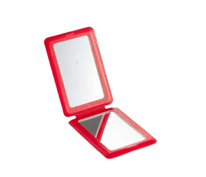 ミラーは2倍拡大鏡と等倍鏡の2面仕様で、細かい部分も見やすくメイクに便利。素材はガラス、PVC合皮、磁石で耐久性も◎。サイズ:約横62mm×縦90mm×厚さ9mm。