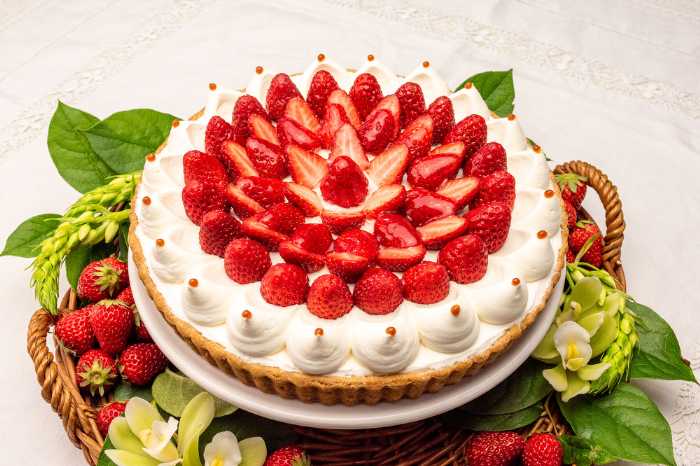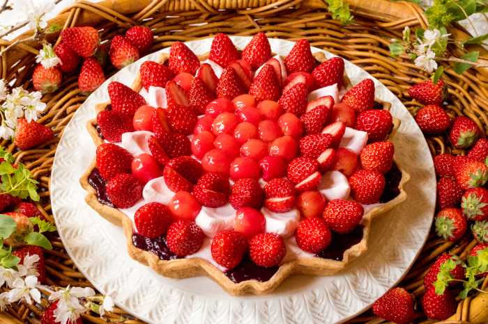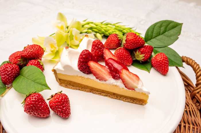 「イチゴとカスタードプリンのタルト」は、プリンアラモードを思わせる懐かしさが魅力で、piece1,090円、whole(25cm)10,908円。