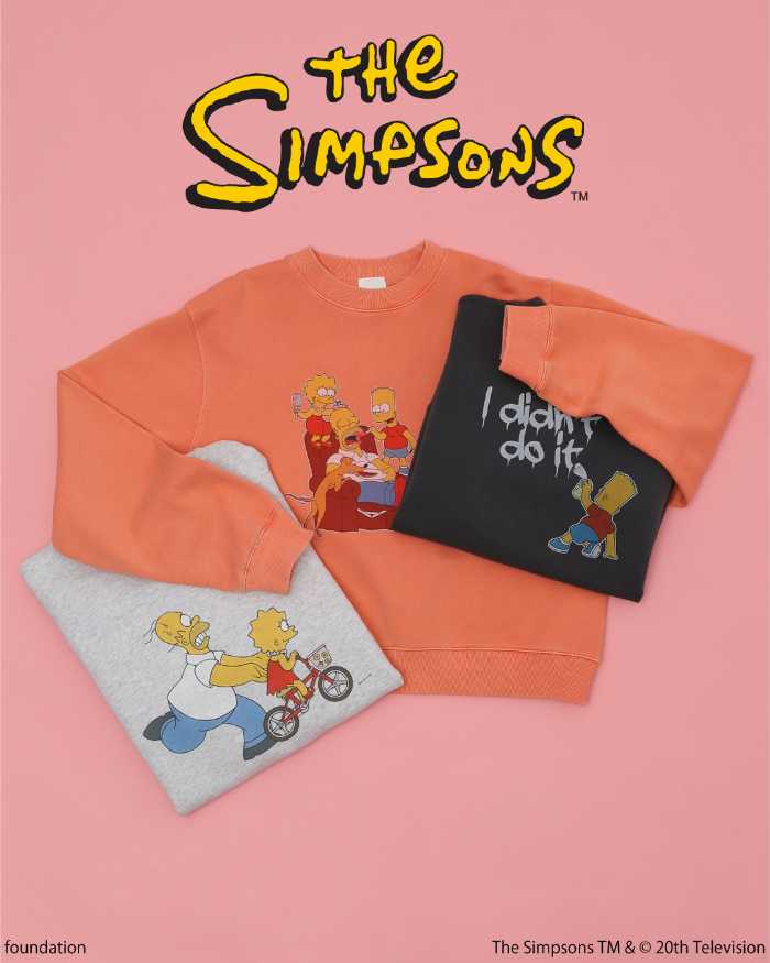 存在感たっぷりのスウェットは2型展開。ホーマーとバートの仲睦まじい姿をフロントとバックにプリントしたTHE SIMPSONS / BIG SWEATは、メンズライクなシルエットでラフに着こなせる一枚。