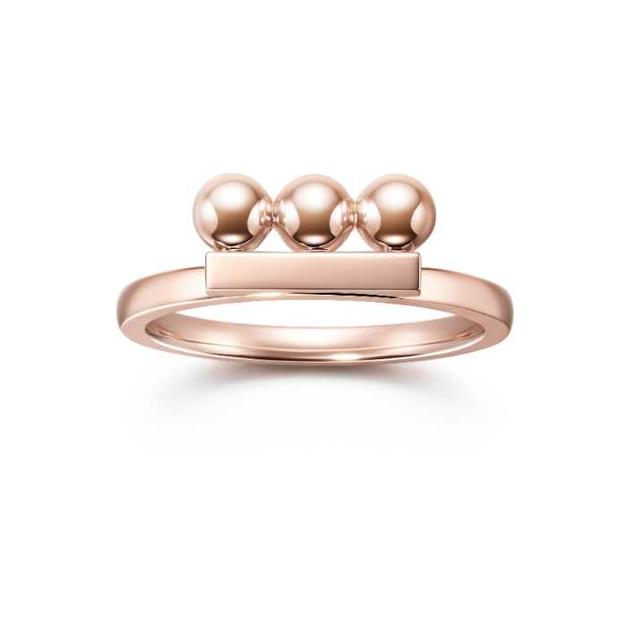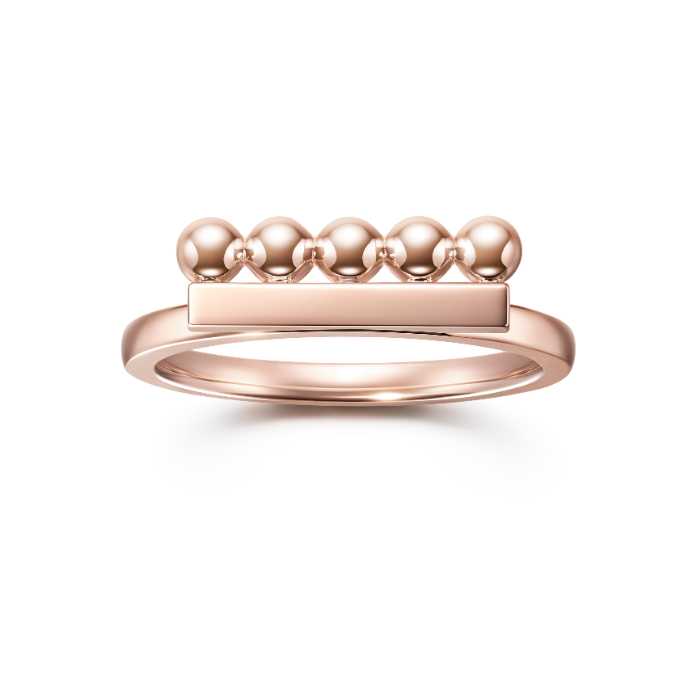 新作「balance shape signature(バランス シェイプ シグネチャー)」リングは、5つのメタルボールが精緻に連なるデザイン。