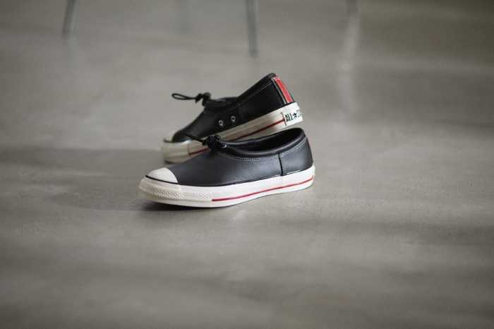 90年代後半~2000年代初頭のアーカイブを再構築したレザーモデル。トグル仕様で脱ぎ履き簡単。