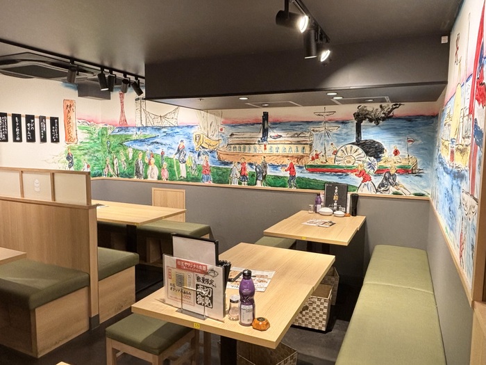 三ノ宮駅直結のアクセス抜群の「鮨 酒 肴 杉玉 プリコ三宮」。食べる前から笑顔になれる大衆寿司居酒屋をテーマに、ランチ〜昼飲み〜ディナーと、リーズナブルな価格でお鮨からお料理まで楽しめるお店。店内に入ると迎えてくれる、職人による手描きの壁面には”神戸の街並み”が描かれております。